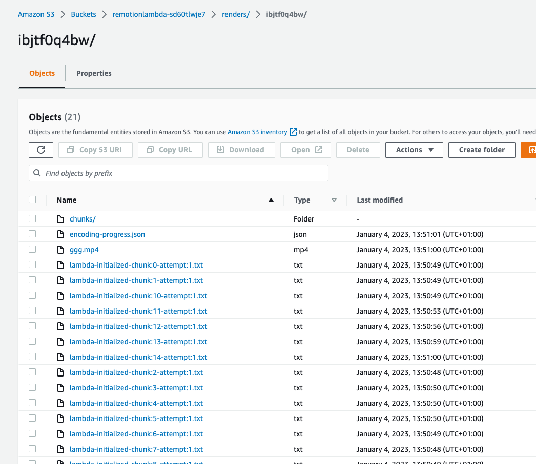 To find which chunks failed to render, add --log=verbose to the Lambda render while rendering via the CLI. Look for a log statement Render folder: to find the link to the render folder in S3.